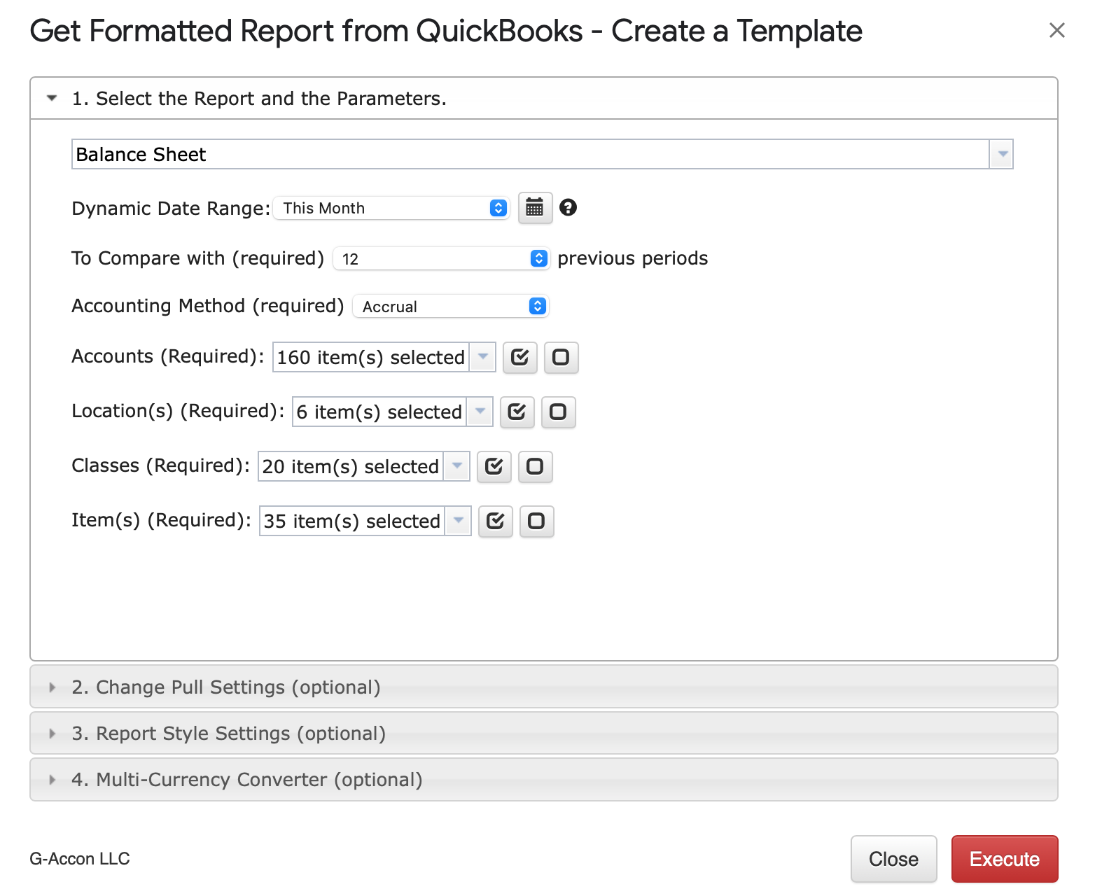 Finally, click "Execute" to generate the report in your chosen currency, and it will appear in your Google Sheet.