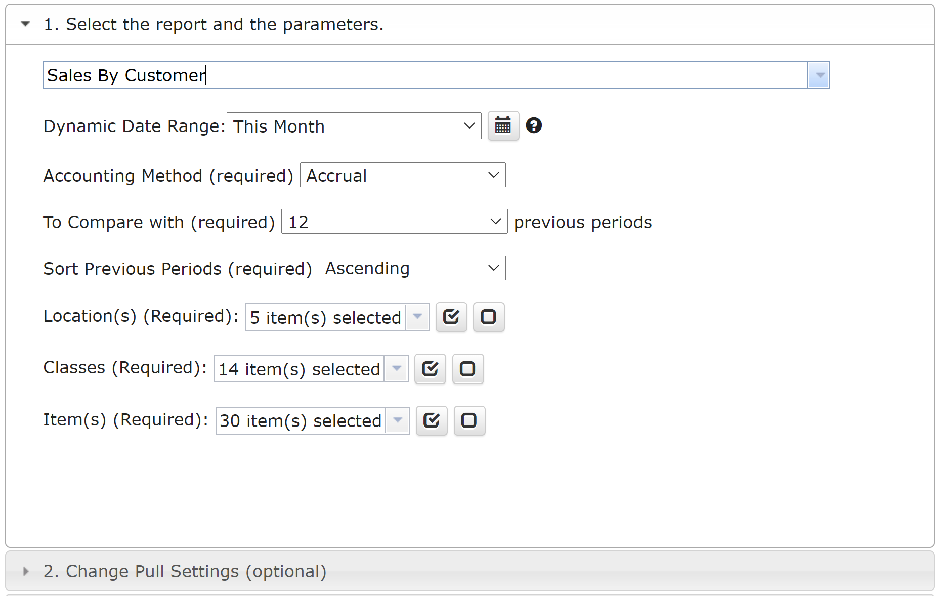 Select the Sales By Customer option from the drop-down menu. G-Accon for QuickBooks provides the ability to set up the Date Range for your data manually or you can refresh your data dynamically.