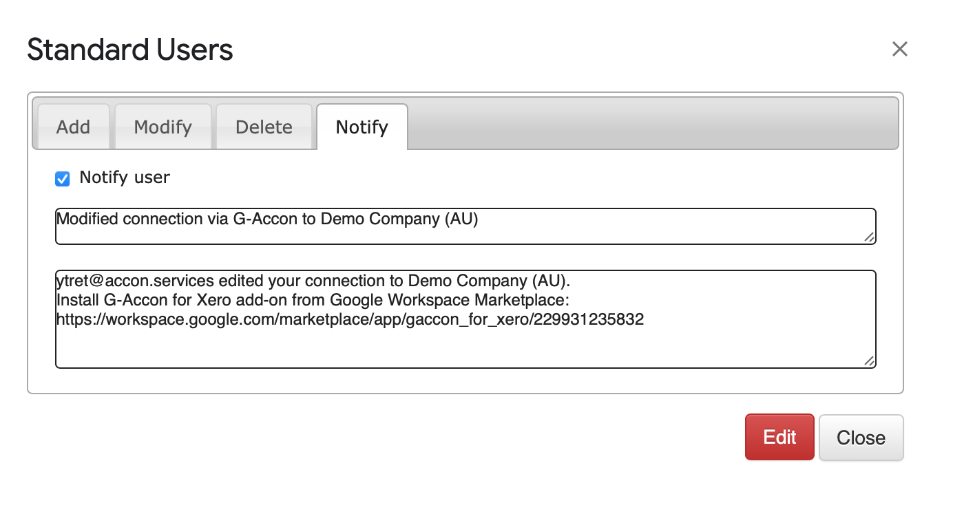 You can access "Add/Manage Standard User" from the G-Accon for Xero menu option.