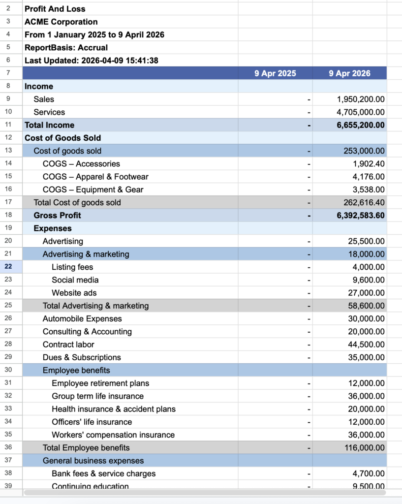Together, these new report types eliminate the need for manual period-over-period calculations and give accounting teams a consistent, repeatable framework for financial analysis โ all within the familiar environment of Google Sheets.