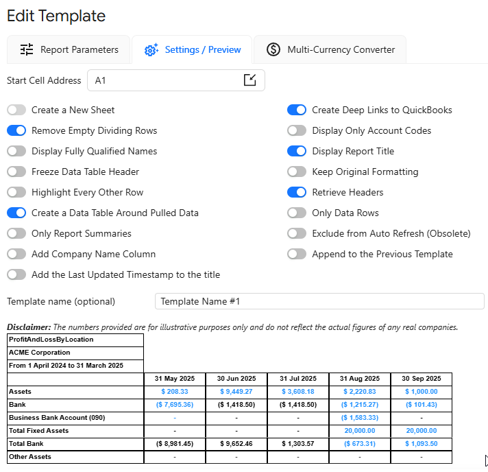 You can also provide the start cell, for instance, A1. And provide the name of the template in Template Name field, for instance, Template Name #1.