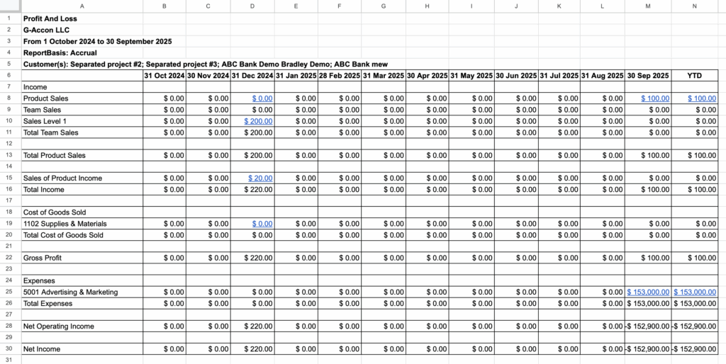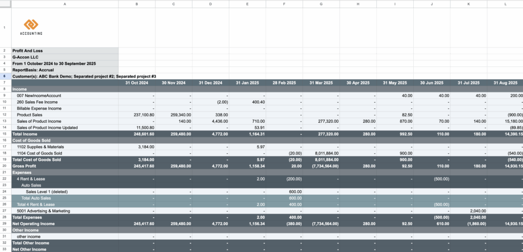 โ Formatted/Custom Accounting Profit and Loss report By Customers