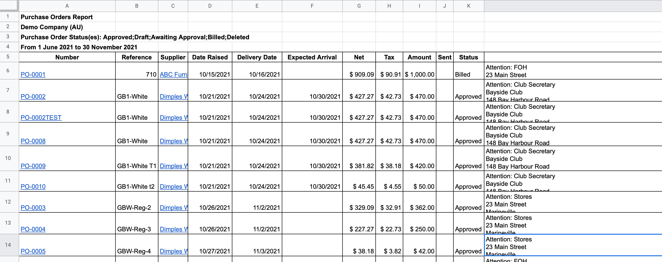Select the Purchase Orders option from the drop-down menu. G-Accon for Xero provides the ability to set up the Date Range for your data manually or you can refresh your data dynamically.