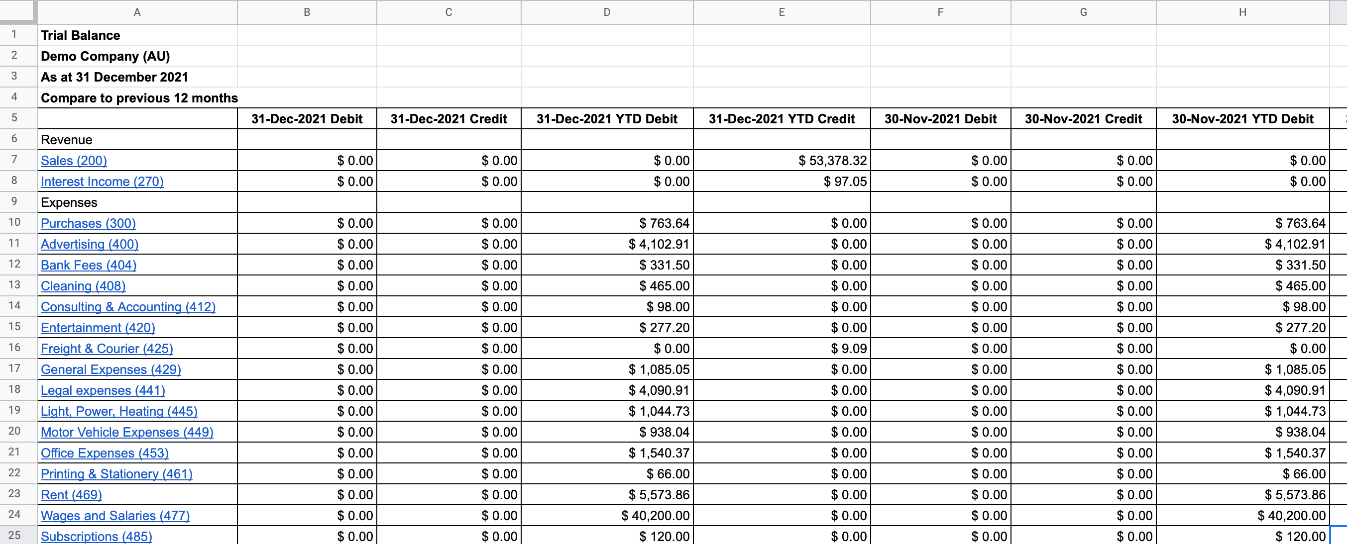 Export Trial Balance Report into Google Sheets