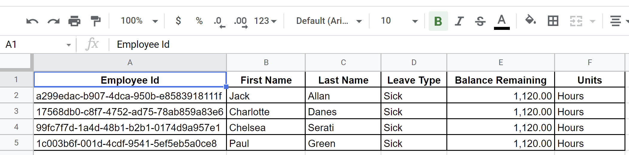 Select Employees Statutory Leave Balances option from the drop down menu. You can select all attributes or some attributes based on your preferences. You can also expend attributes the see the whole structure with sub attributes or collapse it.