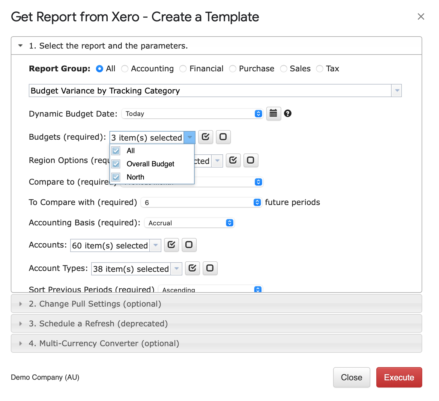 Export Budget Variance by Tracking Category Report into Google Sheets